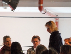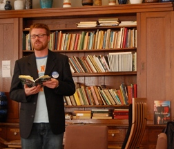 Digtene blev fundet og en flok mødte fredag eftermiddag op i Biffen på Nordkraft for at høre deres digt læst højt. Her læser bl.a. eventens bagmand, Poul Høllund (t.h.)